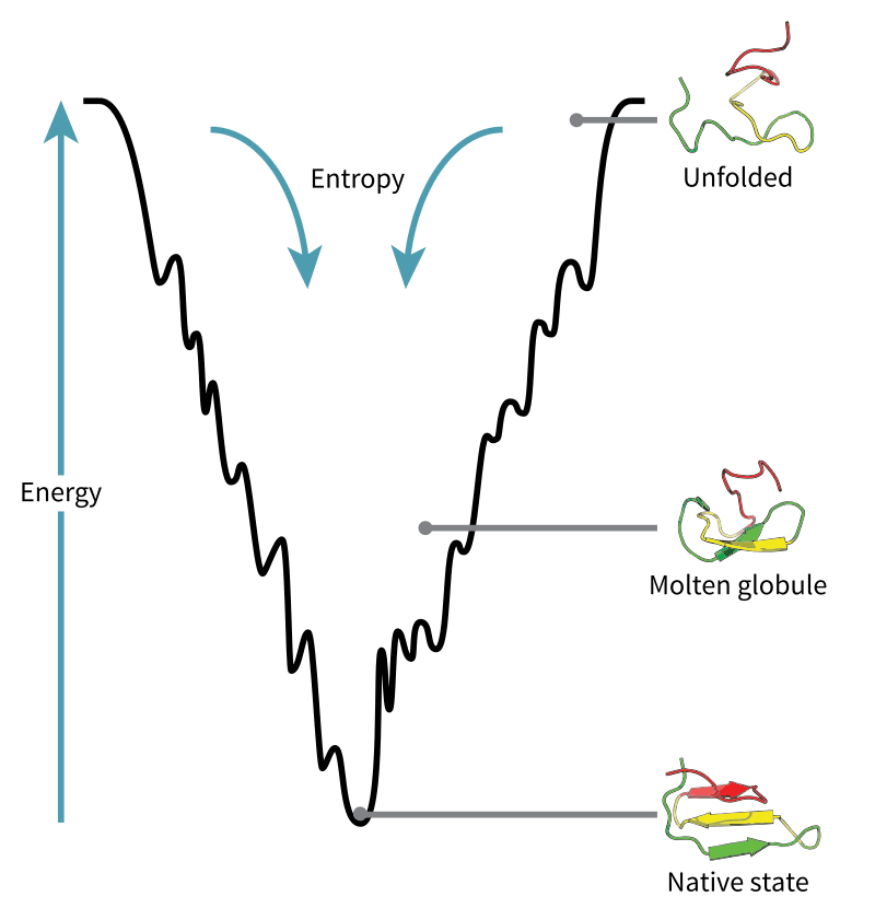 Proteins are an assembly of various units of amino acids, which themselves have different properties. Thus, when these amino acids are strung along together into a chain, some of the units attract each other, and others repel, allowing the chain to fold and crumple to conform to a specific geometry. This is called protein folding. Now, as simple as it may seem, it’s anything but that.