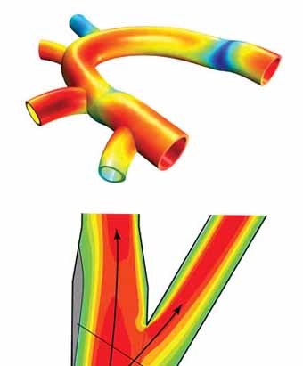 Figure 1. Left to right: (a) Blood flow modeling in blood vessels, (b) the forces in bones from De Motu Animalium by Giovanni Borelli.