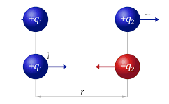Charged particles are repelled by similarly charged particles and attracted by their oppositely charged counterparts. Their force increases if they are nearer to each other and decreases if they are farther. It’s natural to thus think that the magnitude of the potential energy increases as the distance between them decreases, because there is a greater pull or tendency for the charged particle to fall in. This relationship is described by Coloumb’s law.